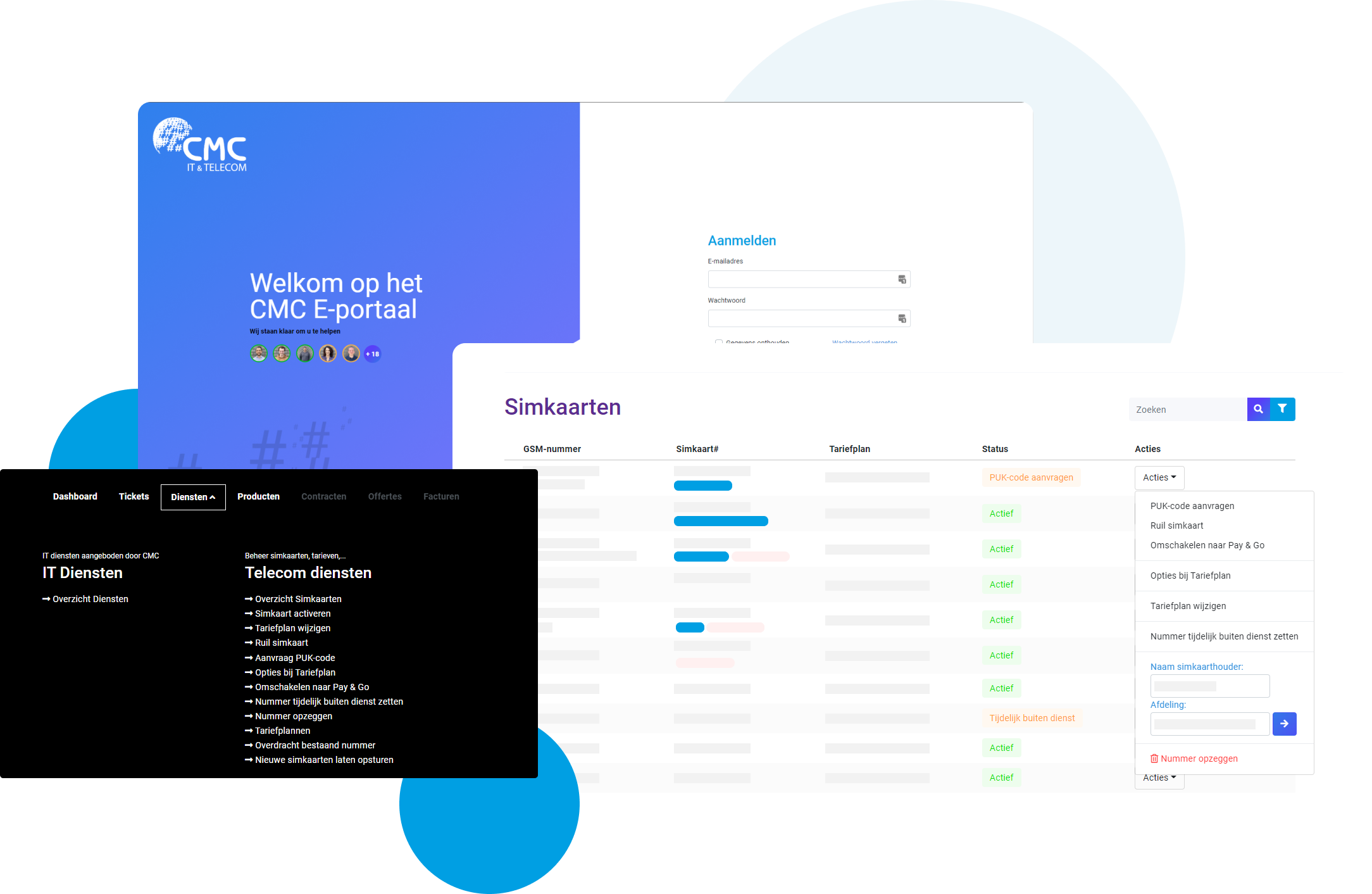 Zowel bestaande als nieuwe klanten genieten ook van onze extra service en bijkomende diensten, via ons CMC E-portaal. Geen geautomatiseerde chatbox, evenwel een gepassioneerd backoffice team op zoek naar de optimale oplossing voor je onderneming.